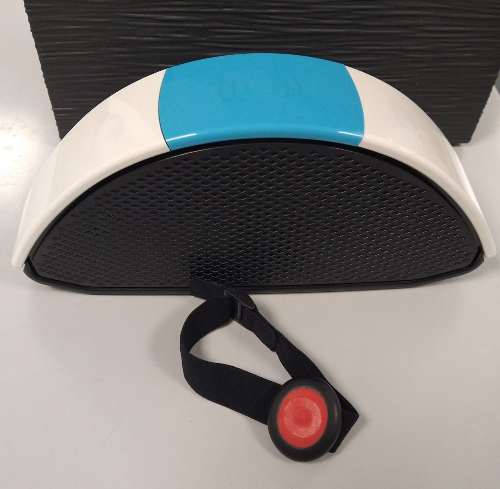 • 1 haut-parleur qui réceptionne et transmet les alertes aux opérateurs accompagné de son socle de recharge. Lorsqu’un déclenchement est réalisé, la géolocalisation est activée