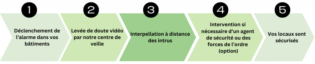 Tous les types de déclenchements (intrusion, anomalie technique, agression, incendie…) sont gérés en temps réel par nos téléopérateurs. Toute alerte se produisant dans vos locaux est prise en charge instantanément et selon une procédure adaptée.